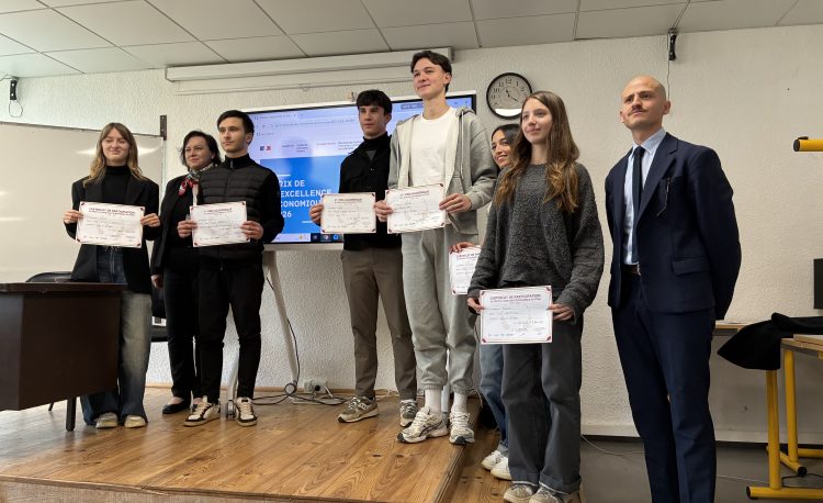| L’équipe de Direction félicite Mme AUFAURE et les élèves, de la classe Terminale STMG – marketing, participants au concours d’excellence économique. L’élève VELLUTINI Antonu Ghjaseppu a été le second lauréat du concours. |